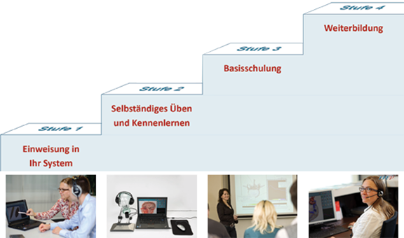 Die Geräte sind einfach in ihrer Bedienung. In einer eintägigen, individuellen Einweisung vor Ort werden die Grundlagen der Methode vermittelt und die Anwendung geübt. Danach kann das Gelernte selbständig in der Praxis umgesetzt werden. Auftauchende Fragen werden individuell telefonisch oder per TeamViewer geklärt. Zusammen mit anderen